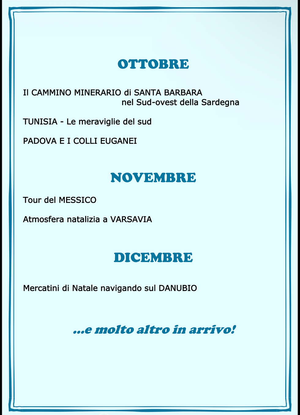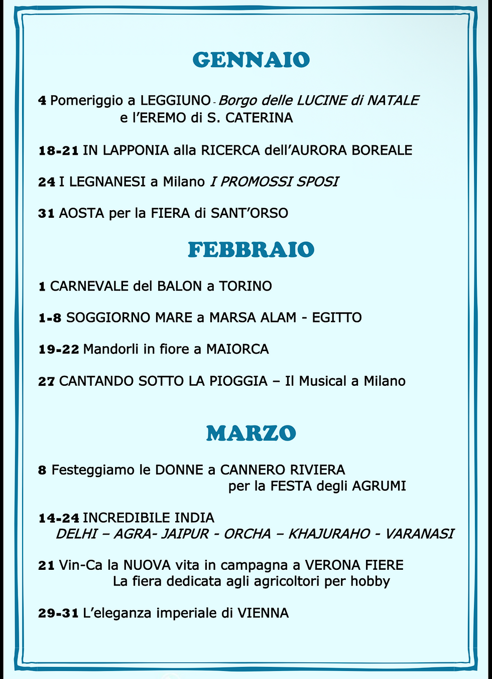 Un invito a partire, sognare e scegliere l’esperienza giusta per te: viaggi di gruppo, gite in giornata, tour organizzati, proposte mare e montagna, pensate per ogni desiderio di viaggio.
